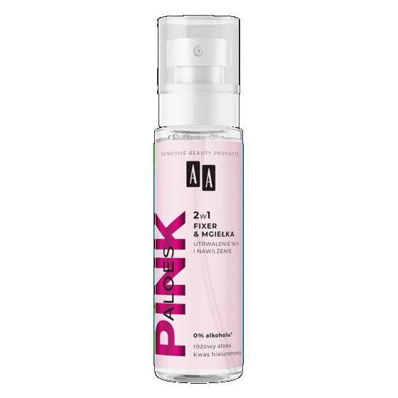 AA Pink Aloes Make-up Spray 2w1 zapewnia trwałość makijażu, jednocześnie odświeżając i nawilżając skórę. Formuła natychmiastowo utrwala makijaż do 16 godzin, dzięki czemu skóra wygląda pięknie i promiennie przez cały dzień. Unikatowy ekstrakt z różowego aloesu* zapewnia intensywne nawilżenie i komfort już od 1. minuty.