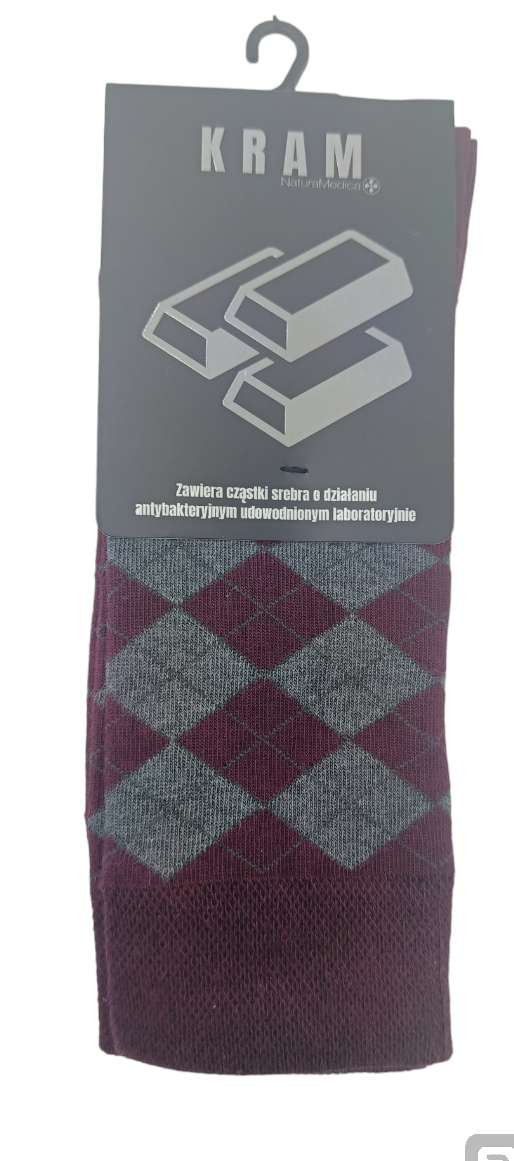 KRAM Natura Medica Skarpety za kostkę Bordowe w szare romby, rozm.43-46