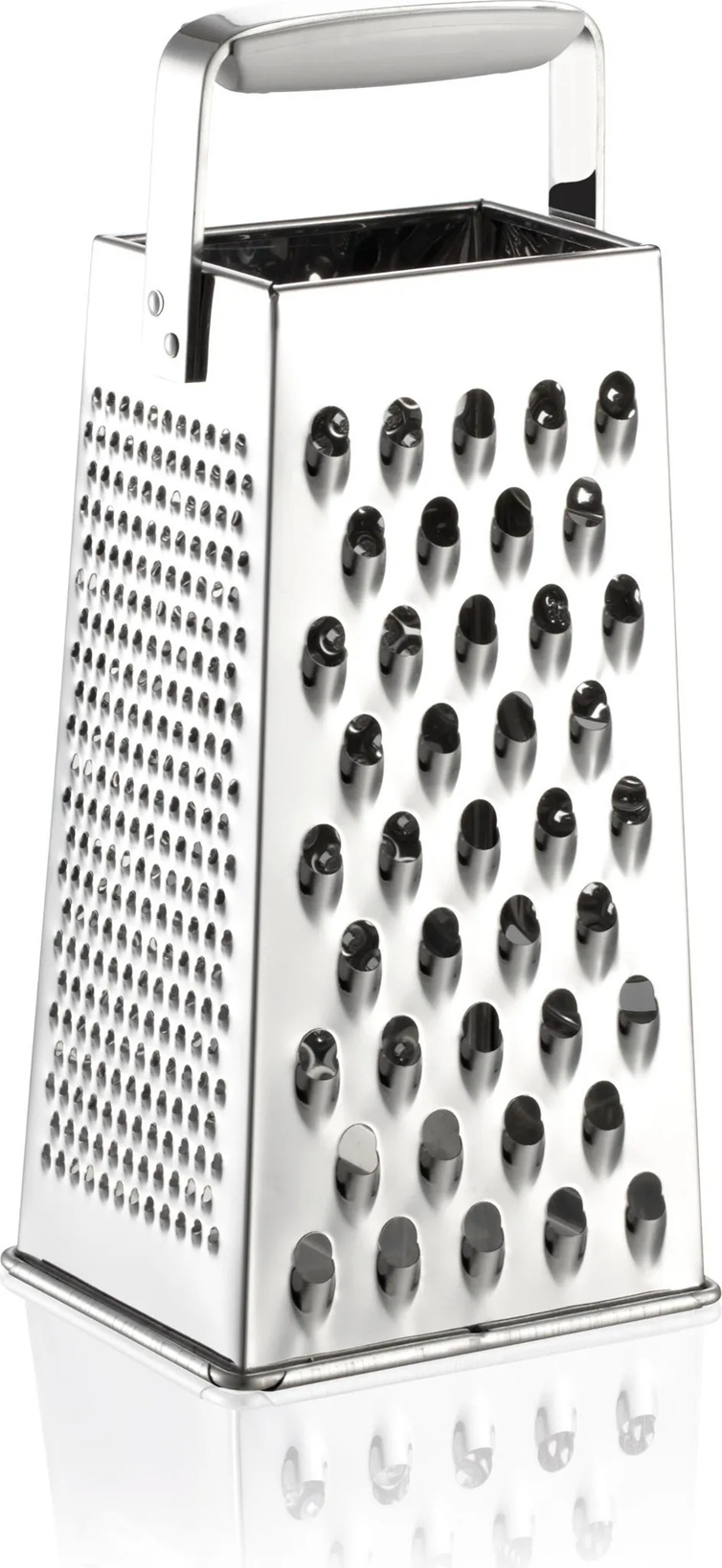 Grubo lub drobno starte, równo pokrojone lub drobno posiekane, 4 powierzchnie tarcia poradzą sobie ze wszystkim, ogórkami, ziemniakami, serem i wszystkimi rodzajami warzyw. Idealna uniwersalna tarka do różnorodnych porcji surowych warzyw. Plastikowa rączka zapewnia wygodny chwyt. Łatwe czyszczenie w zmywarce.