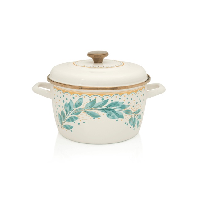Garnek z kolekcji Green Line o średnicy 24 cm i pojemności 6 litrów, to prawdziwa perełka w każdej kuchni. Eleganckie złote akcenty oraz stylowy roślinny wzór dodają mu szyku i sprawiają, że pasuje do każdego wnętrza – od nowoczesnych po bardziej tradycyjne. Dzięki prozdrowotnym właściwościom emalii, jedzenie przygotowywane w tym garnku pozostaje naturalne i pełne smaku. Jest to idealny wybór do gotowania większych porcji, idealny na rodzinne obiady czy przyjęcia.