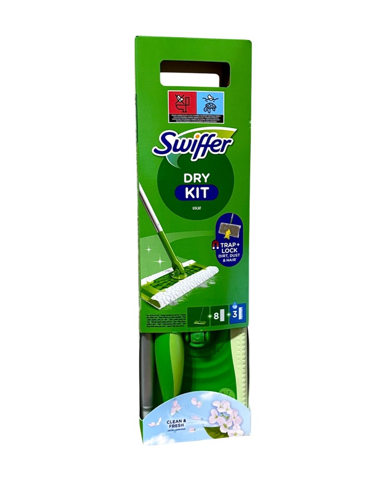 Swiffer Duster Kit do podłóg to praktyczne rozwiązanie, które w kilka chwil pozwala przywrócić czystość w całym domu. Mop z suchymi ściereczkami elektrostatycznymi skutecznie przyciąga i zatrzymuje aż 3 razy więcej kurzu, włosów i sierści niż tradycyjna szczotka, a przy tym pozostawia świeży zapach w pomieszczeniu.